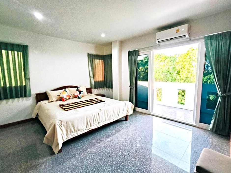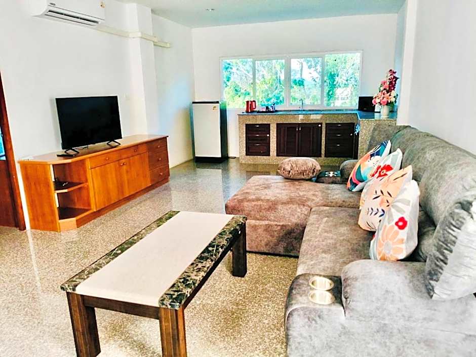 This apartment has a balcony, air conditioning and seating area.